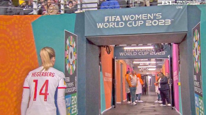 A atacante Ada Hegerberg, 28, protagonizou uma cena inusitada antes do início da partida entre Suíça e Noruega ela segunda rodada da Copa do Mundo feminina, na madrugada desta terça-feira (25).