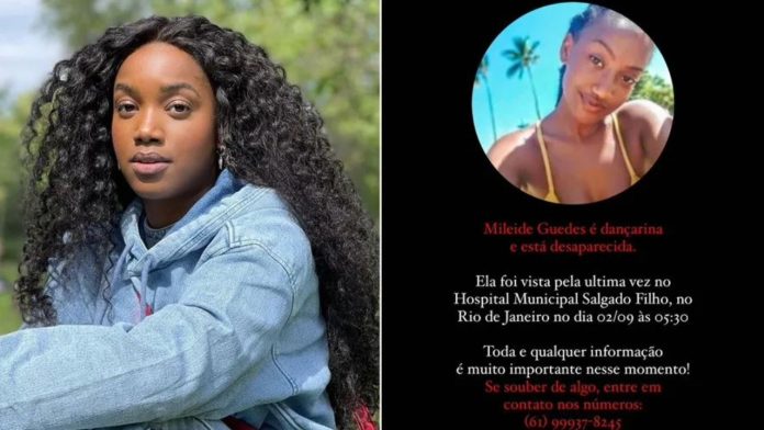 IZA, 33, usou as redes sociais para divulgar o desaparecimento de uma de suas dançarinas, Mileide Guedes.A cantora, que se apresenta no The Town no próximo domingo (10), pediu ajuda para encontrar a jovem.Mulher desaparecida é encontrada dentro de um buraco”Coração apertado, mas fé que vamos encontrá-la. Reposte essa mensagem em suas redes sociais”, escreveu a cantora no storie do Instagram.Mensagem sobre o desaparecimento. “Mileide Guedes é dançarina e está desaparecida. Ela foi vista pela ultima vez no Hospital Municipal Salgado Filho [Méier], no Rio de Janeiro no dia 02/09 às 05:30. Toda e qualquer informação é muito importante nesse momento! Se souber de algo, entre em contato nos números: (61) 99937-8245 / (61i) 99971-2313 “, diz o texto sobre a jovem.Em nota enviada para a reportagem, a Secretaria de Segurança Pública do Rio informou que o caso foi registrado na 12ª DP (Copacabana) e encaminhado à Delegacia de Descobertas de Paradeiros (DDPA), que dará continuidade às investigações.A família da Mileide soltou o seguinte comunicado:”A dançarina Mileide Guedes foi de Brasília ao Rio para os ensaios de um evento que iria realizar dia 10/09/2023 em SP, porém desde quinta-feira estamos sem contato direto com ela. Temos apenas informações de terceiros, primeiro que ela foi assaltada e espancada e levou um tiro na perna, foi atendida no Hospital Municipal Salgado Filho na madrugada de sábado (02/09/2023) e à revelia se evadiu em torno de 5h30 do mesmo dia. Após isso houve outra informação de que o Hostel Maresias do Leme a acolheu e ela saiu hoje (03/09/2023) por volta de 12:30h, porém sem documentos e desnorteada. Após isso foi vista agora a tarde em um teatro em Copacabana, testemunhas disseram que ela se apresentava como uma artista e que estava desorientada. Ela possivelmente está com um surto psicótico. Um familiar está a caminho do Rio para buscar mais informações e a encontrando trazê-la de volta à família. Recebemos algumas informações coerentes, porém bastantes trotes também, é um momento delicado para família e amigos e todo apoio é bem-vindo.”