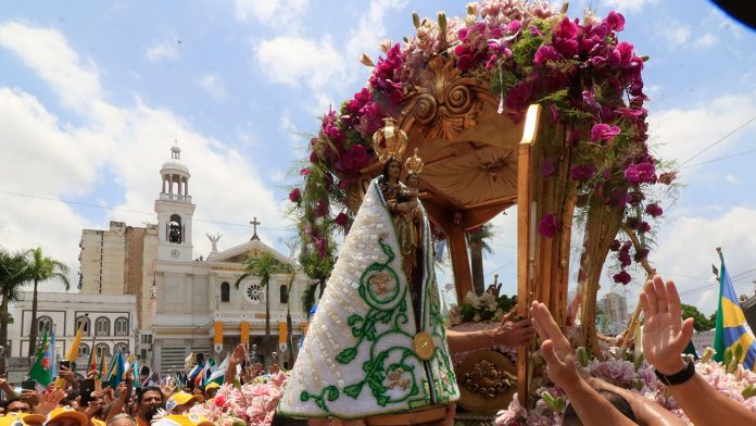 Os devotos de Nossa Senhora de Nazaré voltaram a lotas as ruas de Belém neste sábado (14), durante a oitava romaria do calendário oficial do Círio 2023, a Cicloromaria. A procissão saiu da Praça Santuário por volta das 8h, em um carro berlinda com decoração de Simone Cosme. Criada em 2004, a pedido da Federação dos Ciclistas do Estado do Pará e da Associação dos Ciclistas de Icoaraci, a estimativa de público é que 0 mil pessoas acompanhem a passagem da romaria.O trajeto saiu da Praça Santuário e passará por diversas avenidas e travessas até voltar para o mesmo local. O percurso é de 14 km, com duração aproximada de duas horas. As bicicletas que se destacarem na decoração e criatividade inspirada em Nossa Senhora de Nazaré serão premiadas pela Diretoria da Festa de Nazaré, assim como a premiação para o grupo de pedal mais animado.Percurso da Ciclo Romaria: Praça Santuário, avenida Nazaré, avenida José Bonifácio, avenida José Malcher, travessa 9 de Janeiro, travessa Antônio Barreto, Doca, Domingos Marreiros, avenida Alcindo Cacela, avenida José Malcher, travessa Dr. Moraes, Braz de Aguiar, Serzedelo Corrêa, avenida Gentil Bittencourt, 3 de maio, avenida Conselheiro Furtado, avenida Generalíssimo Deodoro, Caripunas, Quintino Bocaiúvaretorno na Av. Nazaré, rumo à Praça Santuário.