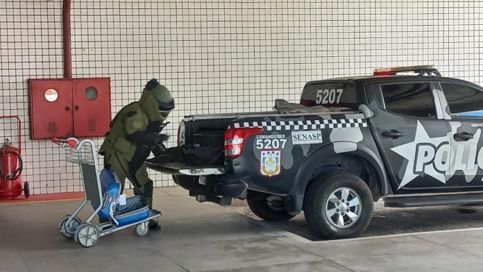 A possibilidade de uma bomba no aeroporto foi anunciada primeiramente pelo ministro da Justiça e Segurança Pública Flávio Dino, na noite do sábado (10). Pelas redes sociais ele afirmou que a Polícia Federal realizou procedimentos no local e iniciou a investigação para coleta de provas e evidências.O Esquadrão Contra Bomba realizou procedimentos técnicos baseados nas Normas Internacionais de Ocorrências Contra bomba, para garantir que o artefato fosse desativado. Os Técnicos Explosivistas constataram que o objeto se tratava de um IED (Improvised Explosive Device).Para realizar o desarmamento do artefato, os policiais conduziram-no até a cabeceira da pista do aeroporto. Através de intervenção manual, os peritos desmantelaram o dispositivo e garantiram a segurança no aeroporto.