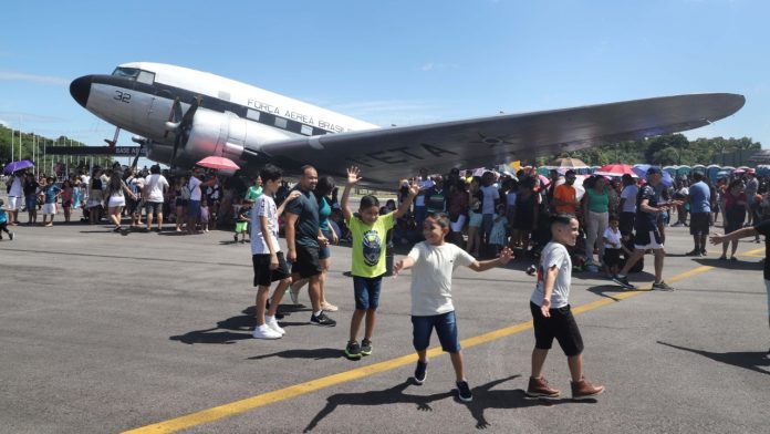 Acompanhando Bruna e o filho, o autônomo Carlos Queiroz, 63 anos, aproveitou as visitas às aeronaves históricas para imaginar como seria estar em voo dentro delas. “É muito interessante para trazer a família, para conhecer toda essa área da aviação e também pra gente imaginar como seria se estivéssemos voando nelas”. O interesse do filho Fernando por desenhos e histórias de aviões também levou o gerente operacional Fabrício Ramos, 43 anos, gerente operacional e a esposa Flávia Ramos, 28 anos, auxiliar administrativa, até a programação. “É importante trazer as crianças para apresentar pra elas o que são as Forças Armadas”, considera Fabrício. “Ainda tem a parte dos equipamentos aeronáuticos e dos carros antigos que também é muito interessante”.
