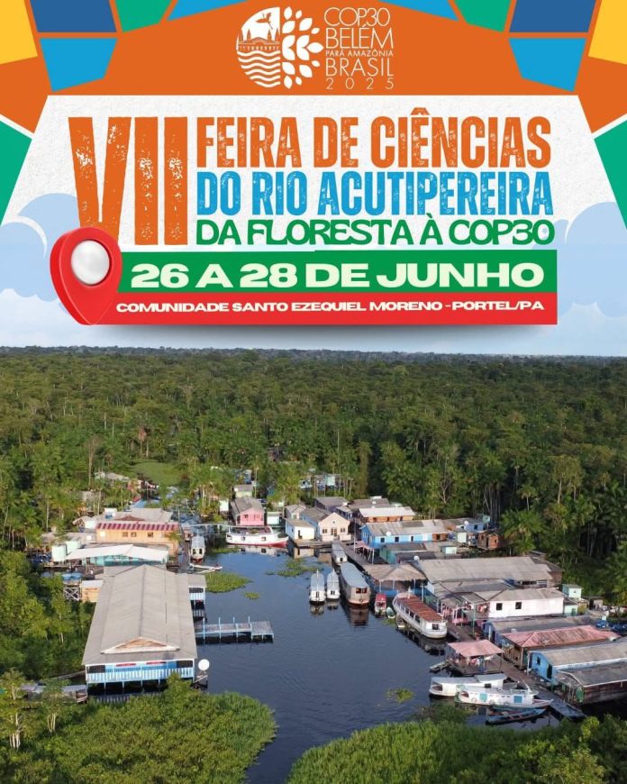 Entre os dias 26 e 28 de junho, a Comunidade Santo Ezequiel Moreno, localizada no Rio Acutipereira, em Portel (PA), será palco da VIII Feira de Ciências do Rio Acutipereira. O evento reúne estudantes, educadores, lideranças locais e pesquisadores para um intercâmbio entre os saberes científicos e os conhecimentos tradicionais da região.