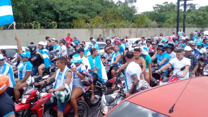 Milhares de torcedores bicolores lotaram os arredores do Aeroporto Internacional de Belém para uma grande recepção e festa junto a delegação do Paysandu, em comemoração a conquista do acesso. Quer mais notícias sobre o Paysandu? Acesse nosso canal no WhatsAppCom bandeiras, camisas e muita animação, os torcedores seguiram atrás do trio elétrico que levava os jogadores do Papão. A parada final é na Doca, onde terá mais festa e música com DJs.