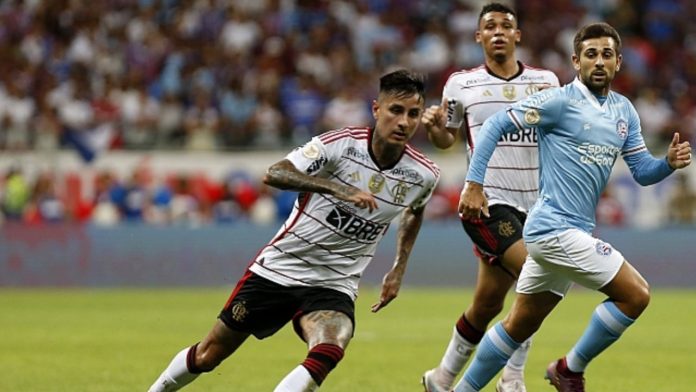 Esse confronto também marcará o reencontro entre Rogério Ceni e Flamengo. O atual treinador do Bahia foi campeão brasileiro pelo Rubro-Negro em 2020, além de ter vencido um Campeonato Carioca em 2021.🔵🔴⚪️ Terceiro treino da semana: elenco participou de atividades em campo reduzido, técnicas e táticas. Tudo sobre o dia no CT Evaristo de Macedo no link ➡️ https://t.co/fpcZRdsFGY. #BBMP📸: Felipe Oliveira/EC Bahia pic.twitter.com/eIptnUu5b6— Esporte Clube Bahia (@ecbahia) September 22, 2023 Nos últimos dez jogos entre as equipes o Flamengo leva a melhor: são oito vitórias do Rubro-Negro contra apenas uma do Bahia, além de um empate. A última vitória do Bahia sobre a equipe carioca se deu em 2019.