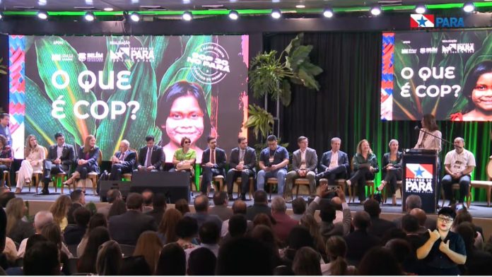 O Governo do Pará realiza na manhã desta segunda-feira (26) o evento “O que é a COP?”, realizado no auditório do Hangar – Centro de Convenções, em Belém. Nesse primeiro momento, participam figuras políticas e representantes da sociedade civil.Com transmissão ao vivo para todo o país, a cerimônia tem como objetivo a preparação e o nivelamento de gestores e sociedade paraense para a grande conferência do clima, a COP-30, que será realizado em 2025 na capital paraense.