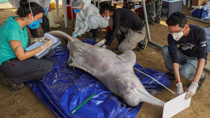 A mobilização, iniciada no final de semana, ocorreu após a morte de mais de 100 mamíferos aquáticos, como os botos vermelho e o tucuxi, que viviam no local.
