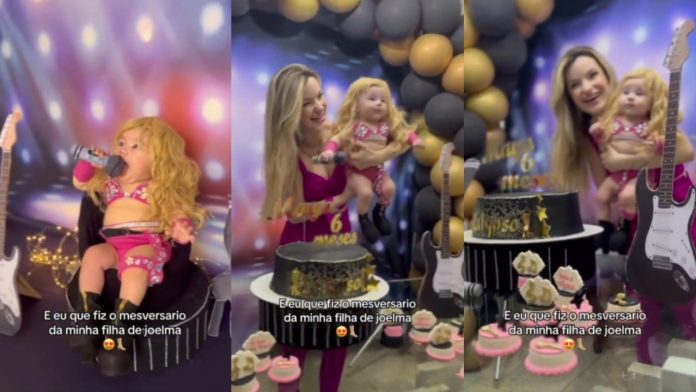 Joelma é uma das cantoras paraenses mais famosas no cenário local, nacional e internacional. Ela, que entrou para a história da música brasileira com a Banda Calypso, coleciona milhões de fãs no Pará e Brasil afora.Uma destas fãs decidiu homenagear a cantora de uma forma inusitada: ela decidiu fazer a festa de seis meses de vida da própria filha com o tema “Joelma”, com direito à decoração e fantasias inspiradas na “Rainha do Calypso”.CONTEÚDO RELACIONADO:Joelma anuncia afastamento dos palcos após diagnósticoProcedimento feito por Joelma a faz rejuvenescer 20 anosAo som de “Voando pro Pará”, o vídeo que mostra a festa em detalhes viralizou nas redes sociais. Muitas pessoas elogiaram a atitude da mãe, já outras acharam um pouco de exagero por parte dela em vestir a criança com roupas similares às que Joelma costuma usar nos shows e até mesmo uma peruca loira e bota de salto alto.Quer mais notícias de virais? Acesse nosso canal no WhatsApp!”Exalando fofura, adorei”, elogiou uma. “A criança já nasceu com bom gosto”, comentou outra. “Coitada da criança! Não foi a criança que ganhou uma festa com o tema Calypso, foi a mãe que fez uma festa para ela própria com a filha fantasiada de Joelma do Calypso. A criança não faz ideia de que está sendo usada para diversão de adultos!”, criticou outro internauta.Apesar de dividir algumas opiniões, o vídeo repercutiu tanto que começou a ser compartilhado em série no X (antigo Twitter) e nas plataformas de vídeos curtos como TikTok e Kwai.VEJA O VÍDEO: