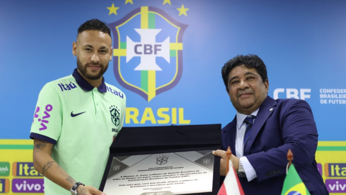 “A Neymar Jr, maior artilheiro da Seleção Brasileira de todos os tempos em jogos contra seleções, o agradecimento da Confederação Brasileira de Futebol (CBF). Com seus gols, você tem levado alegria a milhões de brasileiros e torcedores pelo mundo.”, citou a placa entregue ao camisa 10 da Seleção Brasileira que mais uma vez teve histórias marcas alcançadas na capital paraense. View this post on Instagram A post shared by DOL – Diário Online (@doldiarioonline) O craque expressou a felicidade depois de atingir a marca e afirmou que sempre sonhou em fazer sua história com a Amarelinha. “Estou muito feliz, estou sem palavras, jamais imaginei alcançar esse recorde. Não sou melhor que o Pelé ou qualquer outro jogador que passou pela Seleção. Eu sempre quis escrever o meu nome na história do futebol brasileiro e da Seleção Brasileira e hoje eu fiz isso. Agradeço a minha família e a todos os meus companheiros”, disse.