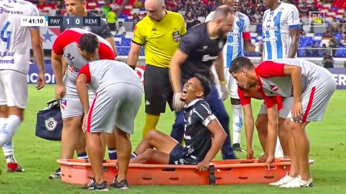 O atacante Pedro Vitor passou por uma ressonância nesta terça-feira (18) e foi constatado, após exames de imagens, que ele sofreu uma lesão ligamentar no joelho esquerdo e vai precisar passar por cirurgia. A informação foi confirmada pelo Clube do Remo através de nota. O Leão Azul também confirmou que o atleta está fora do restante da temporada.Pedro Vitor se lesionou no Clássico contra o Paysandu, disputado na última segunda-feira (17). Quando o cronômetro marcava 36 minutos do primeiro tempo quando Diego Ivo derrubou Nicolas Careca e o atacante do Papão caiu sobre as pernas do azulino, que vinha chegando. Ele deixou o campo no mesmo momento e chorando. Leia Mais:- Ansiedade é um dos principais problemas do Remo na Série C- Caiu! Thiago Gasparino não é mais executivo do RemoImagem que PREOCUPA o torcedor do Remo! Pedro Vitor saiu carregado do Re-Pa #SérieC2023 pic.twitter.com/1FlDrhoMta— DAZN BRA (@DAZN_BRA) July 17, 2023
