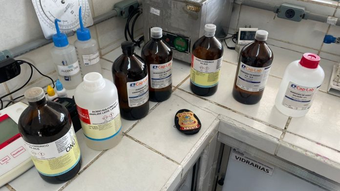 Até o momento em que um produto chega à mesa dos consumidores, muitas das etapas de fabricação, armazenamento e conservação seguem rígidos protocolos de segurança alimentar que exigem uma série de normas que as empresas e fábricas devem seguir à risca.A Polícia Federal autuou uma empresa com produtos químicos controlados sem licença e sem nota fiscal, no município de Ourilândia do Norte, no sul do Pará. A fiscalização foi feita na manhã da última sexta-feira (14) em uma fabricante de laticínios da cidade.Veja também:Preso por morte de professora prova inocência e é libertadoBombons? Fiscalização apreende 776 pacotes de bebidasDe acordo com a PF, a Comissão de Fiscalização de Produtos Químicos da Polícia Federal atestou as irregularidades em produtos usados no laboratório para análise de leite e para limpeza de máquinas na empresa. Com a autuação, a fabricante tem trinta dias para se regularizar, sob pena de perder os produtos químicos apreendidos.Por intermédio da Divisão de Controle de Produtos Químicos (DCPQ), a Polícia Federal realiza o controle e a fiscalização da fabricação, produção, armazenamento, transformação, embalagem, compra, venda, comercialização, aquisição, posse, doação, empréstimo, permuta, remessa, transporte, distribuição, importação, exportação, reexportação, cessão, reaproveitamento, reciclagem, transferência e utilização de produtos químicos que possam ser utilizados como insumo na elaboração de drogas ilícitas.VEJA O VÍDEO: