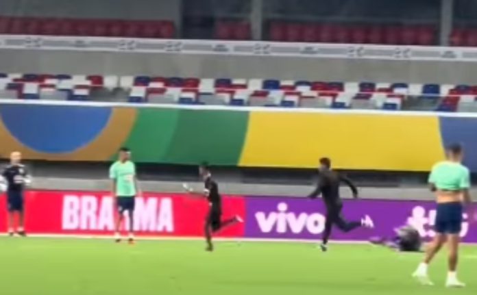 O carinho do torcedor paraense é capaz de qualquer coisa pela Seleção Brasileira, até mesmo de driblar a segurançaFoi o que fez um jovem torcedor que roubou a cena durante o último treino da Seleção, nesta quinta-feira (7), ao invadir o gramado do estádio Olímpico do Pará, em BelémO jovem torcedor invadiu o campo, abraçou o Neymar e quando os seguranças tentaram levar para fora do campo, o show começou com o torcedor driblando e deixando seguranças no chão, ao ponto de levar o torcedor ao delírio. Ver essa foto no Instagram Uma publicação compartilhada por Fute Pará (@futepara) Em meio a selfies e o carinho dos jogadores, o torcedor acabou sendo levado para fora do estádio por conta do fato.- Neymar pode superar marca de Pelé em BelémShow a parte, a tarde desta quinta-feira (7), serviu para o técnico Fernando Diniz definir a Seleção que estreia nas Eliminatórias contra a Bolivia, nesta sexta-feira (8), a partir das 21h45, com cobertura do DOL.E MAIS