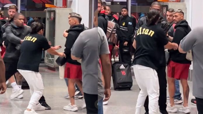 Aproximadamente 40 torcedores compareceram ao aeroporto para expressar seu descontentamento, entoando cânticos como “time sem vergonha!” e “acabou o amor, isso aqui vai virar um inferno”. Quando os jogadores chegaram, medidas de segurança foram implementadas, criando um cordão de isolamento para manter os torcedores afastados da entrada do ônibus. A equipe embarcou rapidamente, apesar dos intensos protestos e até mesmo objetos sendo arremessados, incluindo latas.        Ver essa foto no Instagram            Uma publicação compartilhada por TNT Sports Brasil (@tntsportsbr)