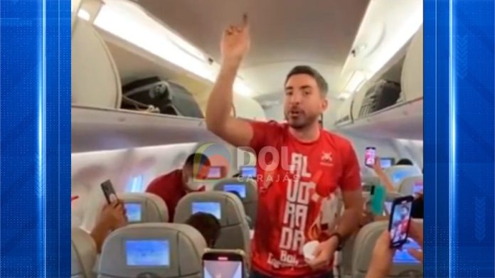 O Festival Folclórico de Parintins no estado do Amazonas tem se tornado cada vez mais famoso e repercute bastante nas redes sociais. A disputa entre os bois Garantido (vermelho) e Caprichoso (azul) leva milhares de pessoas à ilha/município onde acontece o festival, todo ano, no final do mês de junho. Este ano o boi Caprichoso conquistou o bicampeonato.Um dos personagens que chama a atenção durante os três dias de apresentação é o “Amo do Boi”, que, além de ter participação no enredo folclórico, tem a missão de tecer versos durante as apresentações.Veja também:André Valadão se pronuncia após discurso contra LGBTsApple vai deletar fotos arquivadas na ‘nuvem' dos iPhonesCorpo de jogador desaparecido é encontrado esquartejadoNa grande maioria desses versos, os “amos” não perdem a oportunidade de ‘cutucar' o adversário, jogando piadinhas, assim como fazemos em conversas de bar, ao ‘zoarmos' o amigo que torce para um time diferente.Mas uma dessas situações chamou a atenção dos internautas. Dias antes do festival, o “amo” do Garantido, o publicitário João Paulo Faria, encarnou o personagem e começou a declarar os versos, que são feitos à maneira dos repentistas nordestinos, ali mesmo, na hora, dentro do avião.Por mais inusitado que seja, a cena chamou atenção dos passageiros que começaram a gravar a performance do “amo”. Na ocasião, ele não perdeu a oportunidade de “cutucar” o boi adversário, que tem a mesma cor da empresa de aviação.Veja no vídeo abaixo:
