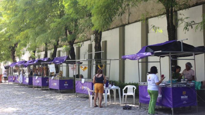 A servidora pública Márcia Pontes, de 54 anos, aproveitou a caminhada no espaço turístico da cidade para conhecer a feira e decidiu fazer uma pintura indígena no braço esquerdo. “Eu acho que a questão mesmo é ser da Amazônia, somos povos amazônidas. De vez em quando, eu gosto de fazer, porque eu trabalho com arte também, cultura e arte, e é uma forma também de valorizar o trabalho, é uma forma de divulgarmos um pouco da nossa cultura”. São cerca seis barracas com vendas de diversos produtos. A autônoma Melissa de Sousa, de 36 anos, trabalha há seis anos com venda de bolsas, biojoias e artesanato.