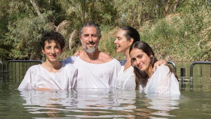 Fé: Marcos Mion e família são batizados no Rio Jordão