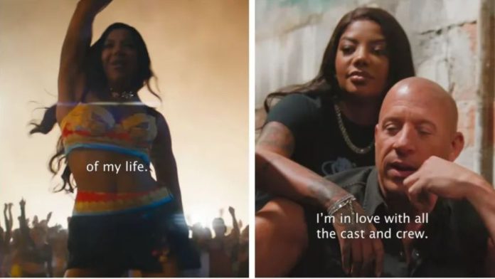 Ludmilla gravou cenas para uma participação no filme “Velozes e Furiosos 10”. Em vídeo divulgados nas redes sociais, ela aparece como a responsável por dar a largada em uma típica corrida de carros da saga. O filme tem previsão de estreia para 18 de maio nos cinemas brasileiros.A cantora já havia compartilhado com seguidores que fez uma música para estar na trilha sonora do filme. “Quando cheguei no set de gravação e vi que era tudo de verdade, foi incrível. Eu dou largada na corrida e aqueles carros começam a passar por mim, aquela loucura. Foi muito bom. Estou apaixonada pelo elenco e equipe, sai mais fã do que já era. Uma das melhores experiencias da minha vida”, diz ela.Algumas cenas do décimo filme foram filmadas no Brasil, nas praias de Copacabana e Arpoador, no Rio de Janeiro. Foram usados helicópteros e drones nas gravações, mas o elenco não esteve presente.