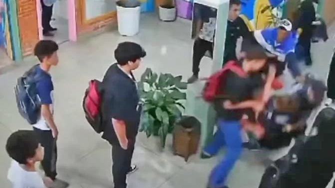 A mãe dele foi até o local e as imagens mostram que as duas discutem por alguns segundos. A professora dá as costas para a mulher para deixar o local, mas começa a ser agredida. Alunos que presenciaram a agressão se aproximam para tentar separar as duas, mas não conseguem. As duas caem no chão e um aluno chuta a professora.Quer ficar por dentro de todas as notícias do Brasil? Acesse o canal do DOL no Whatsapp