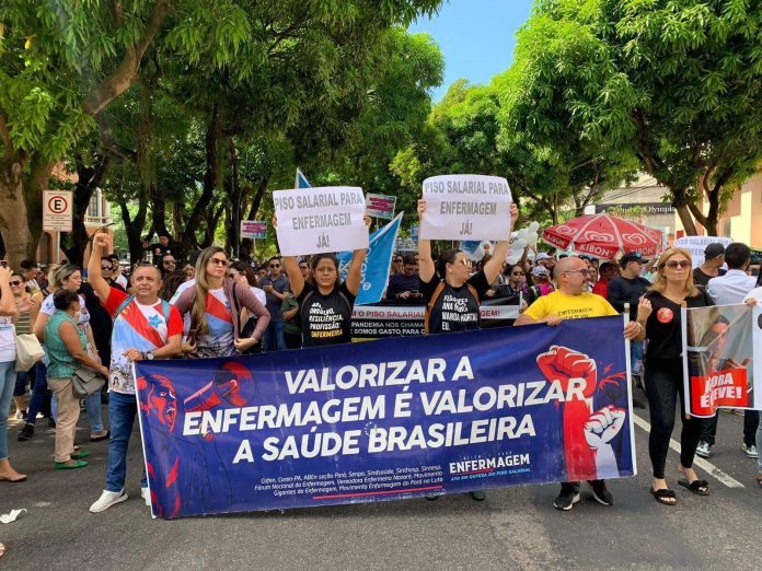 No Pará, os profissionais técnicos e auxiliares que compõem o quadro de funcionários públicos ainda não receberam o piso, de acordo com a presidente do Sindicato dos Auxiliares e Técnicos de Enfermagem dos Municípios de Belém, Marituba e Ananindeua (Sate), Marli Groeff. Segundo a gestora, em Belém, mais de 70% dos profissionais também não receberam nenhum valor: “A promessa é que fosse até sexta-feira [o pagamento], na véspera de Círio, porém devido aos atrapalhos de repasse do Ministério da Saúde, que atrasou dois dias, a falta de internet, a questão da Sesma, eles não deram garantia que a gente vai receber até a véspera do Círio”, pontua. “E deixaram a possibilidade de receber até sexta-feira. Então, aquele percentual que não tinha recebido o piso no primeiro repasse do Ministério da Saúde, continua sem receber. Muitos colegas estão pedindo um ato ainda na semana do Círio. Estamos estudando a possibilidade”, frisa.