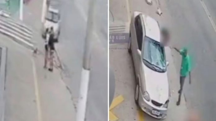 Um casal estava caminhando tranquilamente com o cachorro em uma calçada da Avenida Comendador Sant´Anna, no Capão Redondo, na zona sul de São Paulo, quando parou para se beijar.No momento do beijo, um carro invadiu a calçada e atropelou os dois. Câmeras de seguranças de um posto de gasolina flagraram o exato momento da colisão.Nas imagens, é possível ver os dois se beijando e logo depois sendo atingidos pelo carro. O cachorro conseguiu escapar do atropelamento e não se feriu. Mulher joga carro contra ex-marido e o mata atropeladoVídeo: pneu estoura e causa a morte de borracheiro no ParáO condutor do veículo foi preso em flagrante, de acordo com a Secretaria de Segurança Pública do Estado de São Paulo. Ainda segundo os policiais, o motorista teria consumido bebida alcoólica e teria dito que não se lembrava do que havia acontecido. VEJA O VÍDEOO casal foi socorrido pelo Serviço de Atendimento Móvel de Urgência (Samu). O homem, de 31 anos, encaminhado para o Hospital Municipal do M'Boi Mirim, infelizmente, não resistiu.A mulher, de 26 anos, foi encaminhada para o Hospital Municipal de Campo Limpo. Ainda não se sabe qual o estado de saúde dela. Os nomes das vítimas e nem do condutor do veículo não foram divulgados.O caso foi registrado como homicídio culposo, quando não há intenção de matar, sob direção de veículo e lesão corporal culposa na direção de veículo.