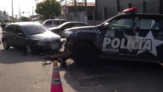 Ao dirigir, todo motorista precisa estar atento a alguns detalhes essenciais à condução. Um deles é a questão da velocidade com que se trafega, que pode ser um fator crucial caso qualquer imprevisto aconteça, evitando, assim, acidentes. Outro ponto importante é não ingerir bebidas alcoólicas antes de pegar o volante.Um carro de passeio atingiu em cheio uma viatura da Polícia Militar do Pará na manhã desta sexta-feira (13), em Belém. O acidente ocorreu bem em frente ao quartel do Comando de Missões Especiais (CME), na rua Engenheiro Fernando Guilhon, bairro da Cremação.CONTEÚDO RELACIONADO:Viatura da PM capota e policiais ficam feridos no ParáViatura da PM perde o controle e capota na IndependênciaDe acordo com informações repassadas pela própria PM, o veículo que provocou o acidente, modelo Volkswagen Gol, seguia em alta velocidade pela rua Fernando Guilhon, rumo à travessa 9 de Janeiro, por volta das 6h.Ao passar o cruzamento com a avenida Alcindo Cacela, o motorista perdeu o controle da direção e atingiu a viatura — que estava parada em frente à sede do CME — e um segundo carro de passeio estacionado logo ao lado.Quer mais notícias do Pará? Acesse nosso canal no WhatsApp!Com a força do impacto do acidente, a viatura ficou com o para-choque destruído. O Gol de cor cinza chegou a rodar na pista e também teve a frente bastante avariada. O segundo carro que estava estacionado teve danos menores na área da caixa de roda dianteira esquerda.Segundo a PM, o condutor do veículo que provocou o acidente apresentava sinais de embriaguez ao ser retirado de dentro do carro e encaminhado para atendimento médico. Ele não corre risco de vida. Até a retirada dos veículos do local, uma das pistas da rua Engenheiro Fernando Guilhon ficou interditada.VEJA O VÍDEO: