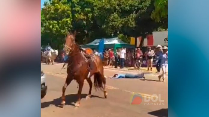 Uma tradição nas feiras agropecuárias, as cavalgadas ruralistas têm sido recorrentemente alvo de questionamentos. Muitas apontam que os animais são submetidos a situações análogas a maus-tratos, já outras pessoas apontam os eventos coloca em risco inclusive a situação dos participantes. No domingo (18), durante uma cavalgada em Guaraí, norte do Estado do Tocantins, uma mulher de 44 anos caiu após o cavalo que ela estava montada disparar.O caso aconteceu durante a cavalgada de abertura da 32ª Expo Guaraí, que acontece no período de 18 a 25 de junho, um dos principais eventos da cidade, localizada nas proximidades da divisa com o Pará. Durante o trajeto o animal saiu em disparada e a mulher, que participava de uma comitiva, não conseguiu se segurar na sela. A mulher no asfalto, numa movimentada avenida, e ficou desacordada. Ela foi socorrida e levada para um hospital da cidade e devido à gravidade  foi transferida para o Hospital Regional Araguaína.LEIA TAMBÉM:+ Adolescentes baleados por ex-aluno em escola eram namorados+ Homem é morto com vários tiros no meio da rua no sul do Pará+ Mulher se passa por agente de saúde para praticar furtos Em vídeo que circula nas redes sociais é possível ver o momento em que o animal corre em alta velocidade e a mulher se desequilibra. O cavalo só para depois que ela cai e sai rolando pelo asfalto. Muitas pessoas param ao redor da mulher que estava sangrando. VEJA O VÍDEO DO MOMENTO DA QUEDA!