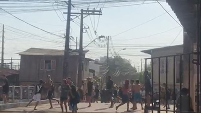 Um carro chegou a ser apedrejado na travessa 3 de maio. Moradores disseram que tudo começou após uma briga. “É coisa de gangue ou de torcida”, disse uma moradora em off para a reportagem.