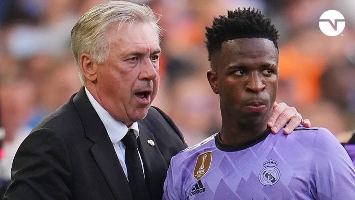 Em entrevista coletiva após a derrota para o Valência por 1 a 0, neste domingo (21), Carlo Ancelotti saiu em defesa de Vinicius Júnior. Durante a partida, o jogador do Real Madrid sofreu racismo de torcedores do time da casa.Durante a partida do Real Madrid contra o Valência na tarde deste domingo, o jogador brasileiro Vinicius Júnior foi alvo de gritos racistas da torcida do Valência no estádio de Mestella. Nos acréscimos, foi expulso durante uma confusão generalizada entre jogadores das duas equipes.Vini Jr sofreu racismo MAIS UMA VEZ e quem foi expulso? Ele mesmoTá se repetindo a cada jogo, mas NADA é feito. Isso tudo só mostra a importância que dão e o (des)preparo quando o assunto é racismopic.twitter.com/ZaVFqOZaKw— desimpedidos (@desimpedidos) May 21, 2023 Carlo Ancelotti falou sobre o ocorrido em entrevista coletiva após o jogo e disse ter conversado com Vinícius Júnior.”Falei com ele durante o jogo porque o ambiente era muito quente e muito ruim. Perguntei se ele queria continuar. Eu não queria tirá-lo porque o ambiente é racista. Nunca me aconteceu. Assim não. É inaceitável. A La Liga tem um problema que não é Vinicius, ele é a vítima. O que fazer? Não se pode jogar futebol assim. Eu diria o mesmo se tivesse ganhado. É muito grave. Insultam Vinícius o tempo todo e depois dão vermelho para ele. Estou muito triste. É uma liga com grandes equipes, mas temos de tirar isto. Estamos em 2023. A única maneira é parar o jogo. É verdade que há um protocolo, mas é preciso ir para casa”, disse o técnico.O treinador também afirmou que o brasileiro é o que mais sofreu faltas e insultos durante o confronto com o Valência. “É o jogador (Vini) que recebe mais faltas e mais insultos. Eu disse ao árbitro que ia tirá-lo e ele me disse que devia continuar. Com o cartão vermelho, todo o estádio gritava macaco, macaco, macaco. Estou muito triste. Nunca me aconteceu algo assim. Ele é uma criança e queria continuar, mas nestas condições é muito complicado”, finalizou.Que porrada na Liga foi essa entrevista do Ancelotti! Inconformado com outro episódio de racismo contra Vini Jr., disse que falaria apenas do episódio. E que, se mantido o padrão da liga espanhola, nada vai acontecer. pic.twitter.com/9qF90CnmuH— Gian Oddi (@gianoddi) May 21, 2023