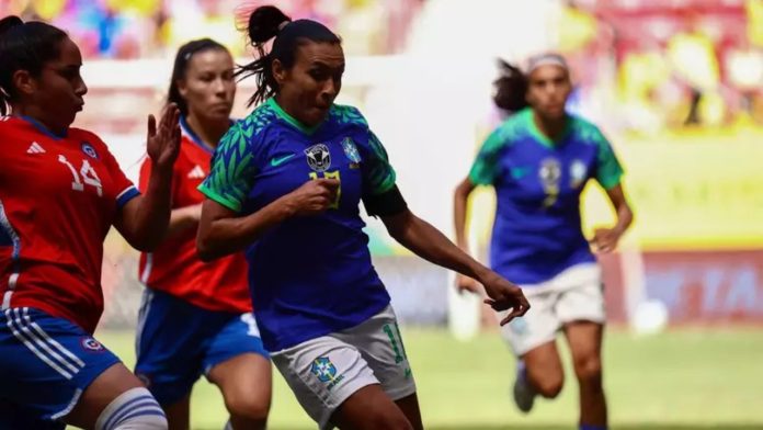 A seleção brasileira fez no domingo (2) sua partida de despedida antes do embarque para a Copa do Mundo feminina. Festejadas diante do público no estádio Mané Garrincha, em Brasília, as comandadas de Pia Sundhage bateram facilmente o Chile por 4 a 0.Gabi Nunes, Duda Sampaio, Luana e Geyse marcaram os gols da tranquila vitória, mas nenhuma bola na rede foi tão celebrada quanto a entrada de Marta. A craque de 37 anos foi acionada os 29 minutos do segundo tempo, para delírio dos 15.892 espectadores presentes.Eleita seis vezes melhor do mundo, a atacante vem de problemas físicos e uma séria lesão no joelho esquerdo. A alagoana é uma referência para a torcida -e para as companheiras-, mas a treinadora disse não saber se ela será titular no Mundial, na Austrália e na Nova Zelândia.O mais provável é que seja mesmo uma opção de banco, alguém que pode contribuir em minutos limitados. Foi o que a camisa 10 procurou fazer no Mané Garrincha, provocando furor a cada domínio de bola.Antes de que a craque entrasse em campo, a seleção construiu um triunfo sem sustos. O Chile, quinto colocado na última Copa América, não é um time do nível do Brasil e não se classificou para o torneio na Oceania.Seleção brasileira está convocada para a Copa do MundoCBF estuda manter Pia Sundhage após o Mundial FemininoA equipe verde-amarela achou espaços e soube aproveitar particularmente a fragilidade demonstrada pelas adversárias na bola aérea. Logo aos cinco minutos, Nycole fez o cruzamento da direita, concluído em bom cabeceio de Gabi Nunes.Foi também de cabeça o segundo gol, anotado por Duda Sampaio, aos 29, com assistência de Antônia. O terceiro não foi de cabeça, mas surgiu de mais um cruzamento. Luana ficou com a sobra na entrada da área e acertou bom chute de pé direito.A estratégia estava funcionando e foi mantida após o intervalo. Aos cinco minutos da etapa final, foi a vez de Geyse usar a testa para balançar a rede. Tamires, com precisão, foi a responsável pelo passe aéreo.Sob sol forte ao meio-dia, o ritmo caiu. O público só queria ver em campo Marta e começou a gritar seu nome. Os torcedores viram a melhor jogadora da história do Brasil por pouco menos de 20 minutos e a aplaudiram bastante.O grupo agora viaja à Austrália, com embarque marcado para as 5h de segunda-feira (3) e previsão de 25 horas de trajeto. A equipe treinará em Gold Coast até o próximo dia 18, quando partirá a Brisbane, sua base durante a primeira fase.A Copa começará no dia 20, e a estreia do Brasil está marcada para o dia 24, contra o Panamá, em Adelaide. No Grupo F, as comandadas de Pia Sundhage ainda enfrentarão a França, no dia 29, em Brisbane, e a Jamaica, em 2 de agosto, em Melbourne.