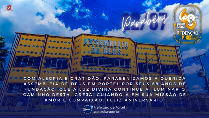 Que venham muitos mais anos de dedicação e prosperidade para a Assembleia de Deus em Portel, sempre levando sua mensagem de fé e transformação para os corações dos portelenses e além das fronteiras do município. Parabéns à igreja e a todos os seus fiéis por essa data tão especial! Que Deus continue abençoando a Assembleia de Deus em sua missão de levar esperança e amor a todos.