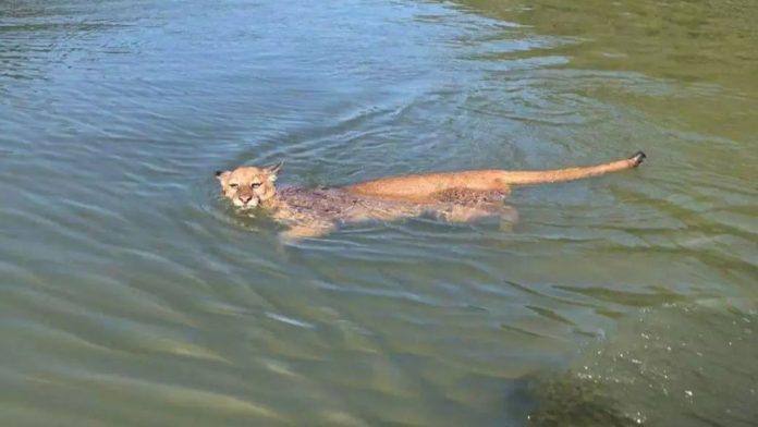 Vídeo: onça parda é filmada atravessando rio a nado em SC